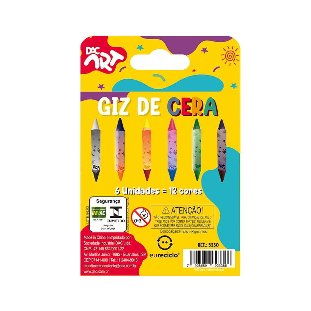 Tags: Giz de cera, ponta dupla, 12 cores, colorido, 80g, Dac, DacArt, material escolar, desenho, arte, pintura, criatividade, crianças, estudantes, fácil de segurar, não tóxico, durável.