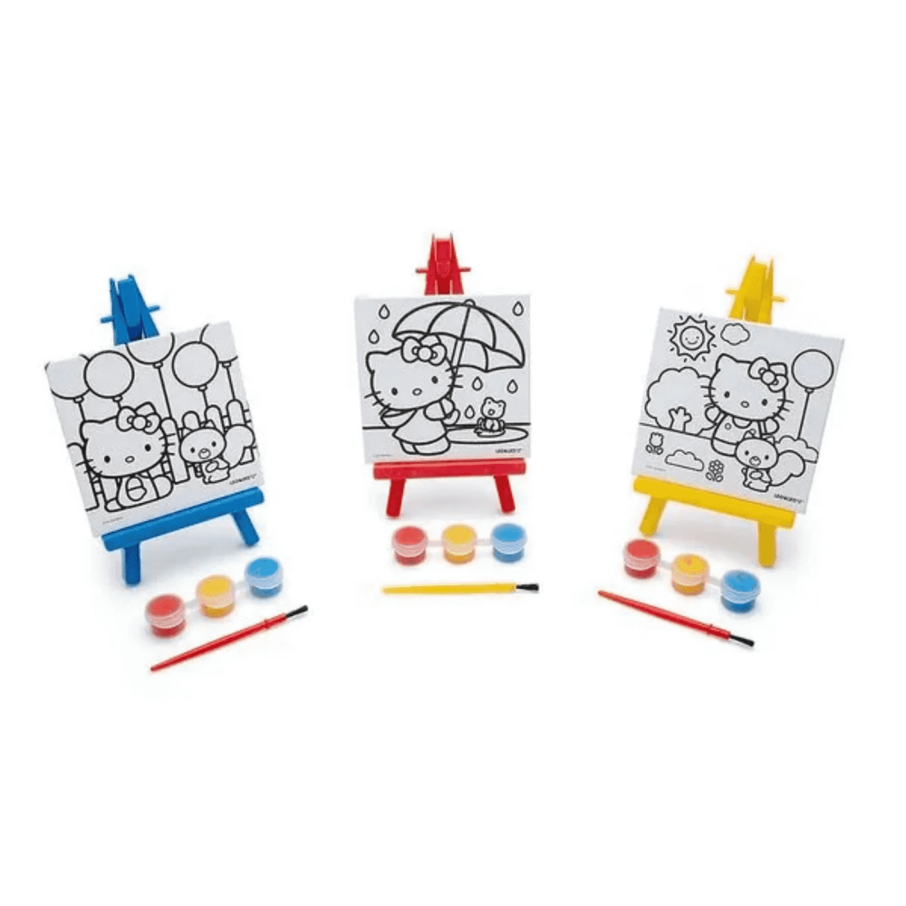 Tags: Mini Tela de Pintura, Hello Kitty, 3 Guaches, Leo & Leo, material de arte, pintura infantil, atividade criativa, presente para crianças, kit de pintura, arte para crianças