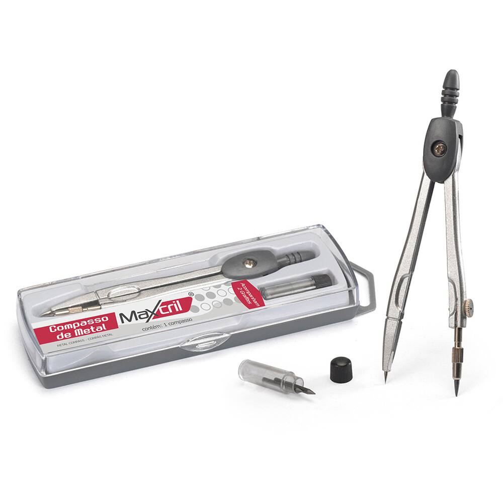 Compasso Metálico c/Grafite e Estojo - Maxcril